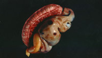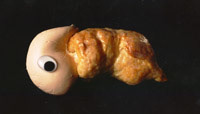 'Pastry' sculptures made from pastry, femo, wax, doll parts; two super 8 loop projections